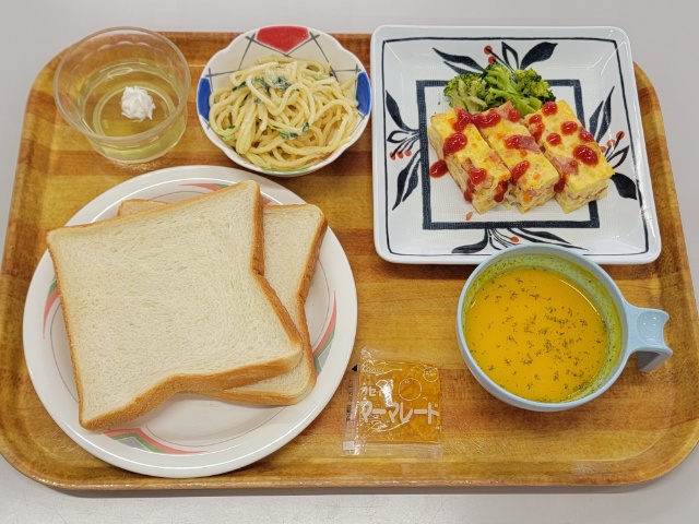 栄養士が自分の検食のオムレツにケチャップをかけるのがヘタで、まだら模様なのはご容赦ください(笑)