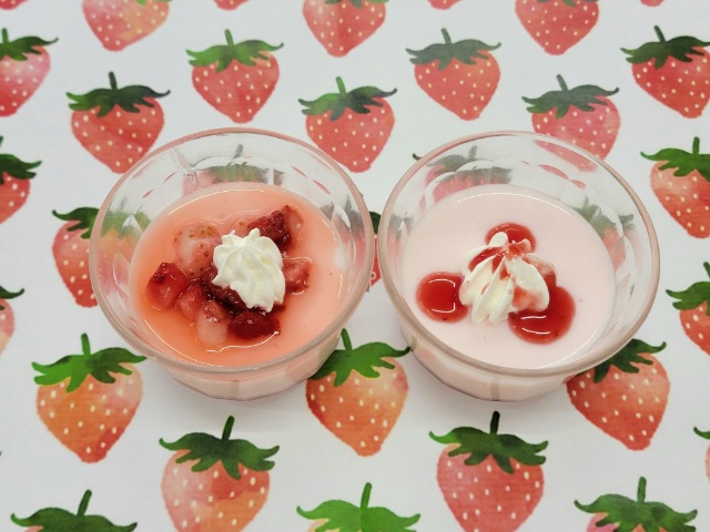 お楽しみおやつは15日(水)に、「いちごヨーグルトババロア」を提供させていただきました。